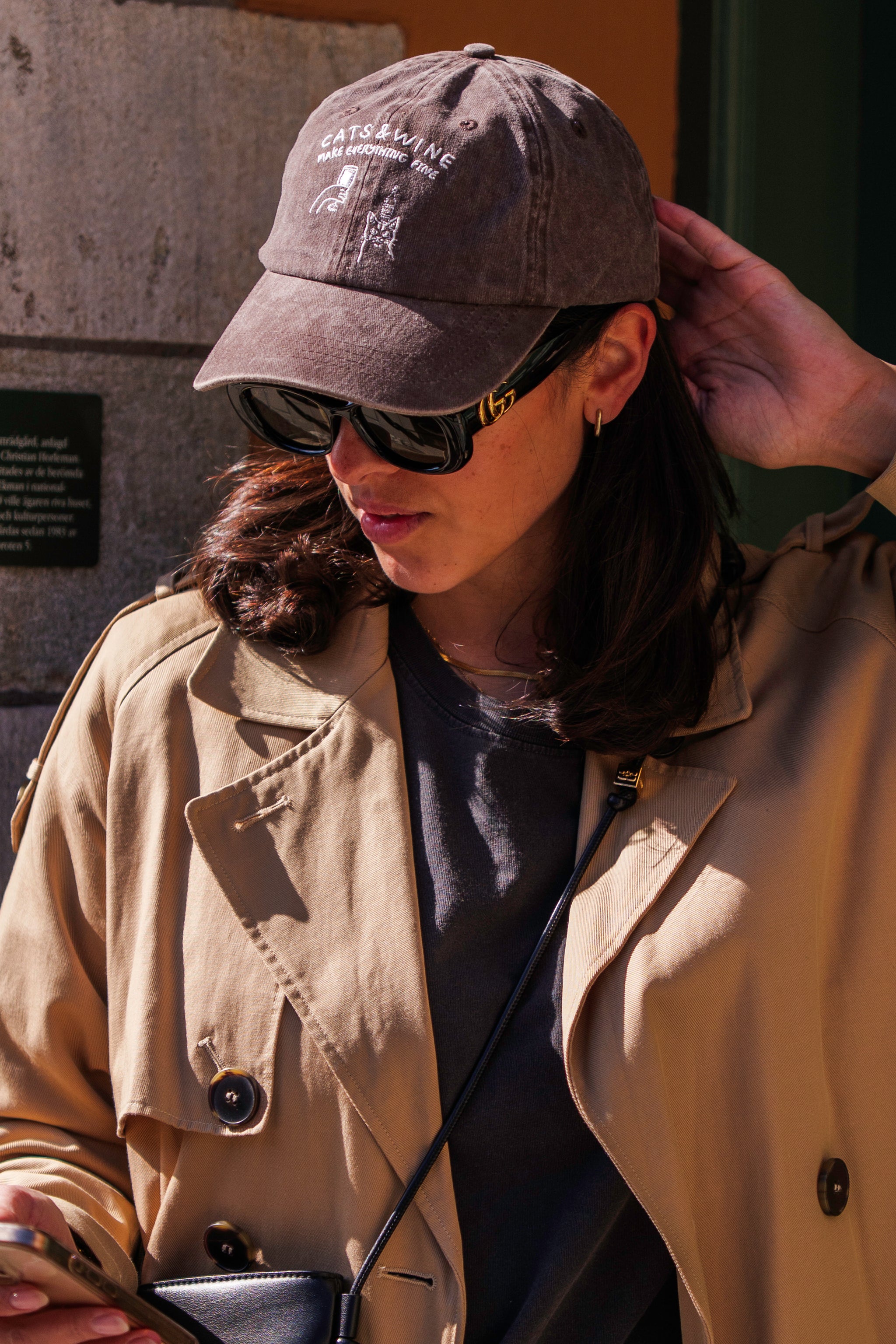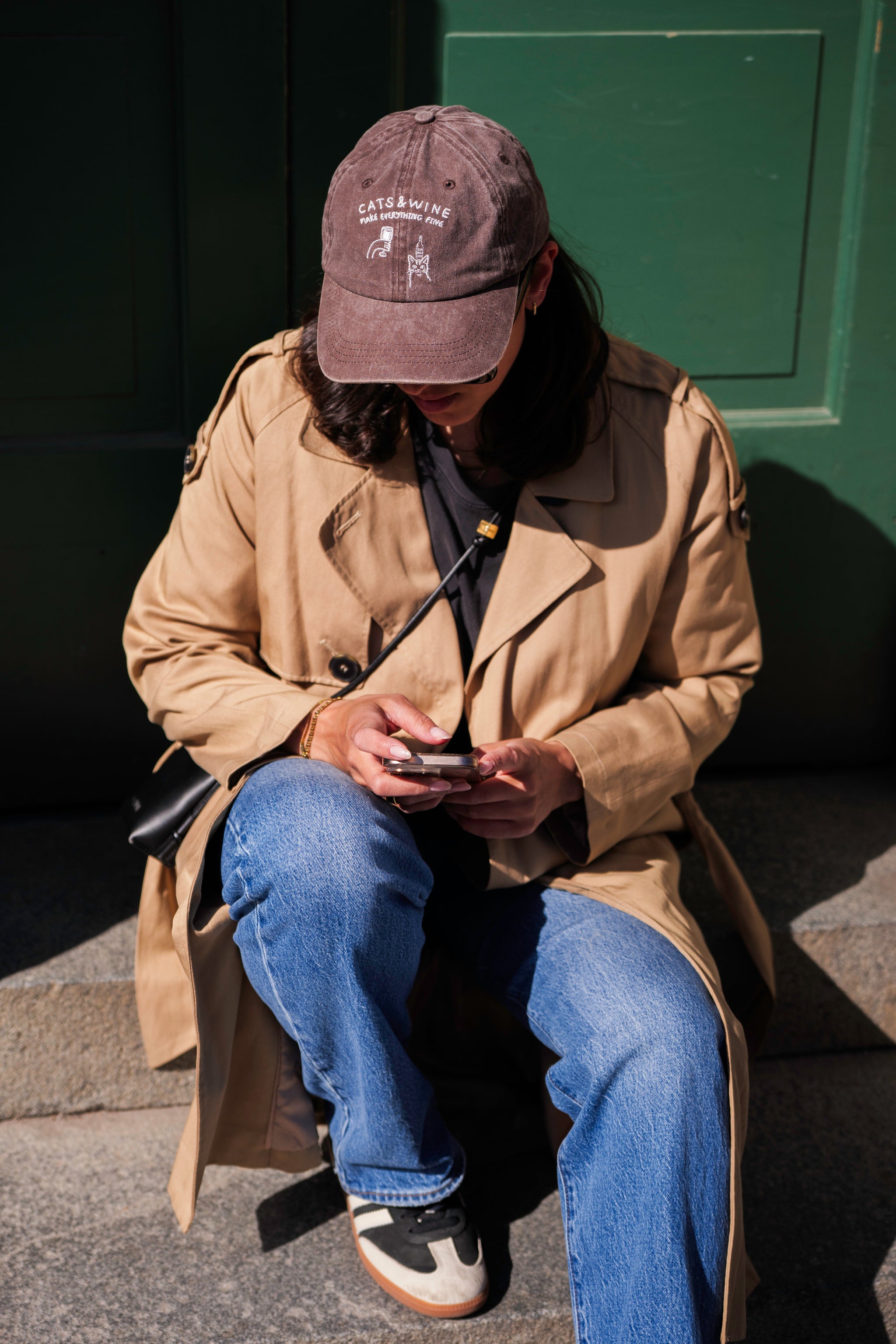 Casquette en denim marron - Logo "Cats & Wine Make Everything Fine"